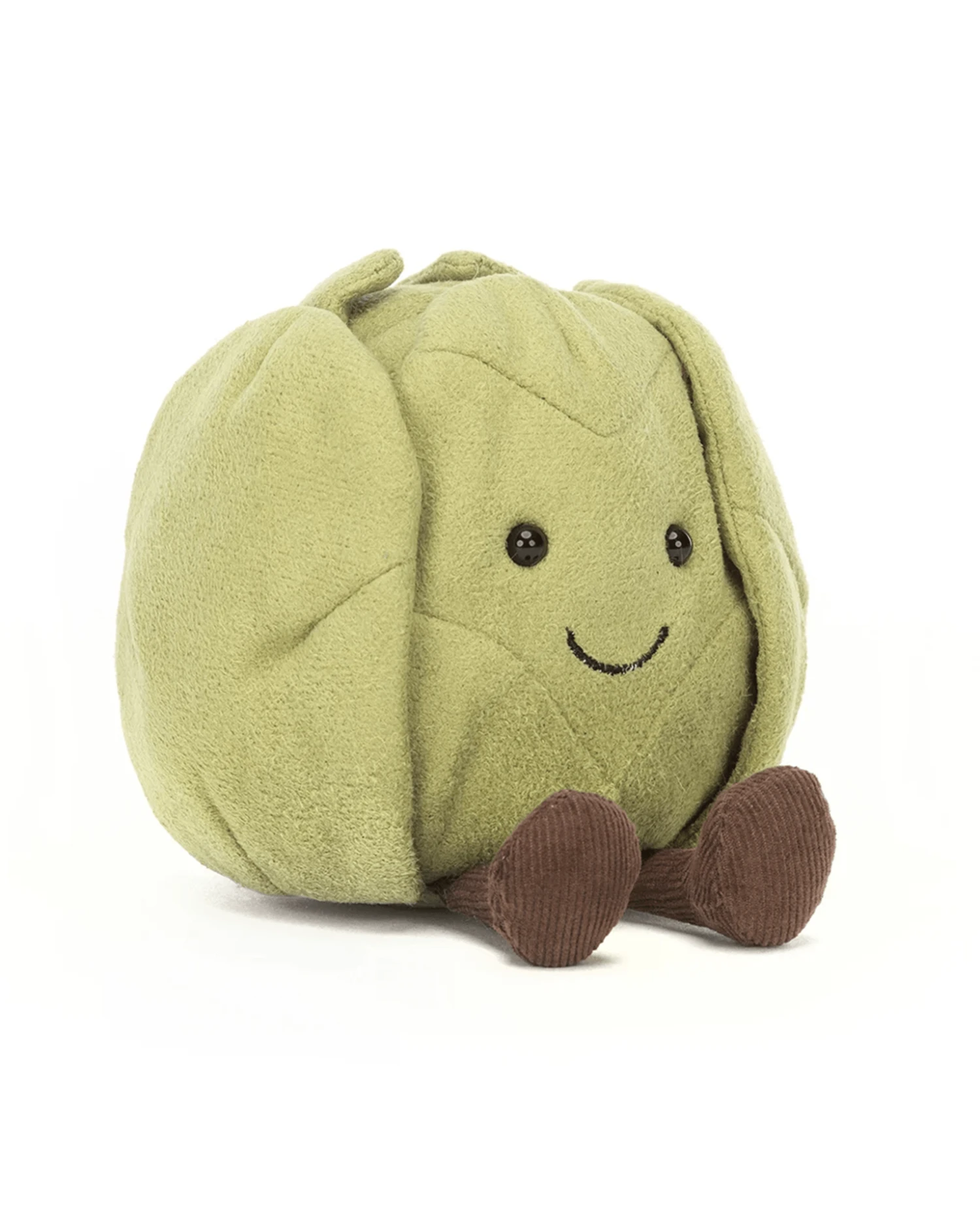 It wouldn’t be Christmas dinner without Amuseable Brussels Sprout! This podgy pudding has suedey leafy layers, stitchy folds and kicky cord boots. Sit this sprout on your table or under the tree, or simply snuggle all day long. A cheery, chunky, roly-poly veggie!