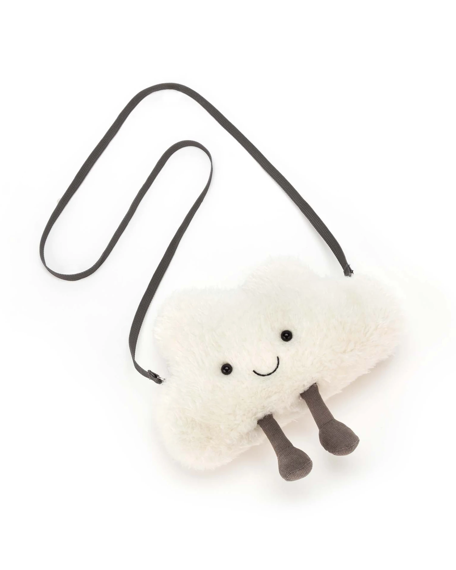 A-cumulus your necessities in the Amuseable Cloud Bag. This adorable fluffy bag is the perfect piece to round off any outfit with its soft white plush and grey strap. The super-cute face and cordy legs make it a go-to whatever the weather. Strap length 116cm