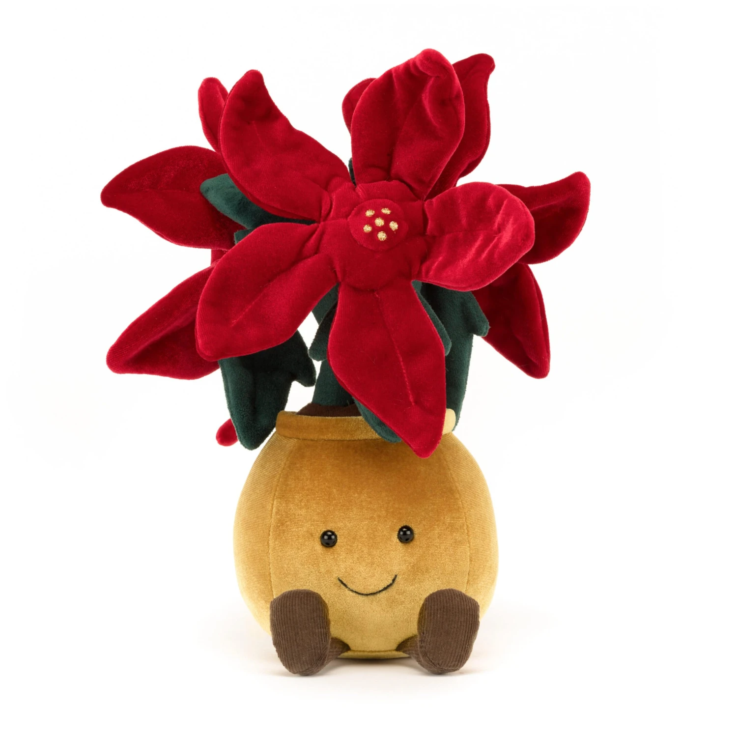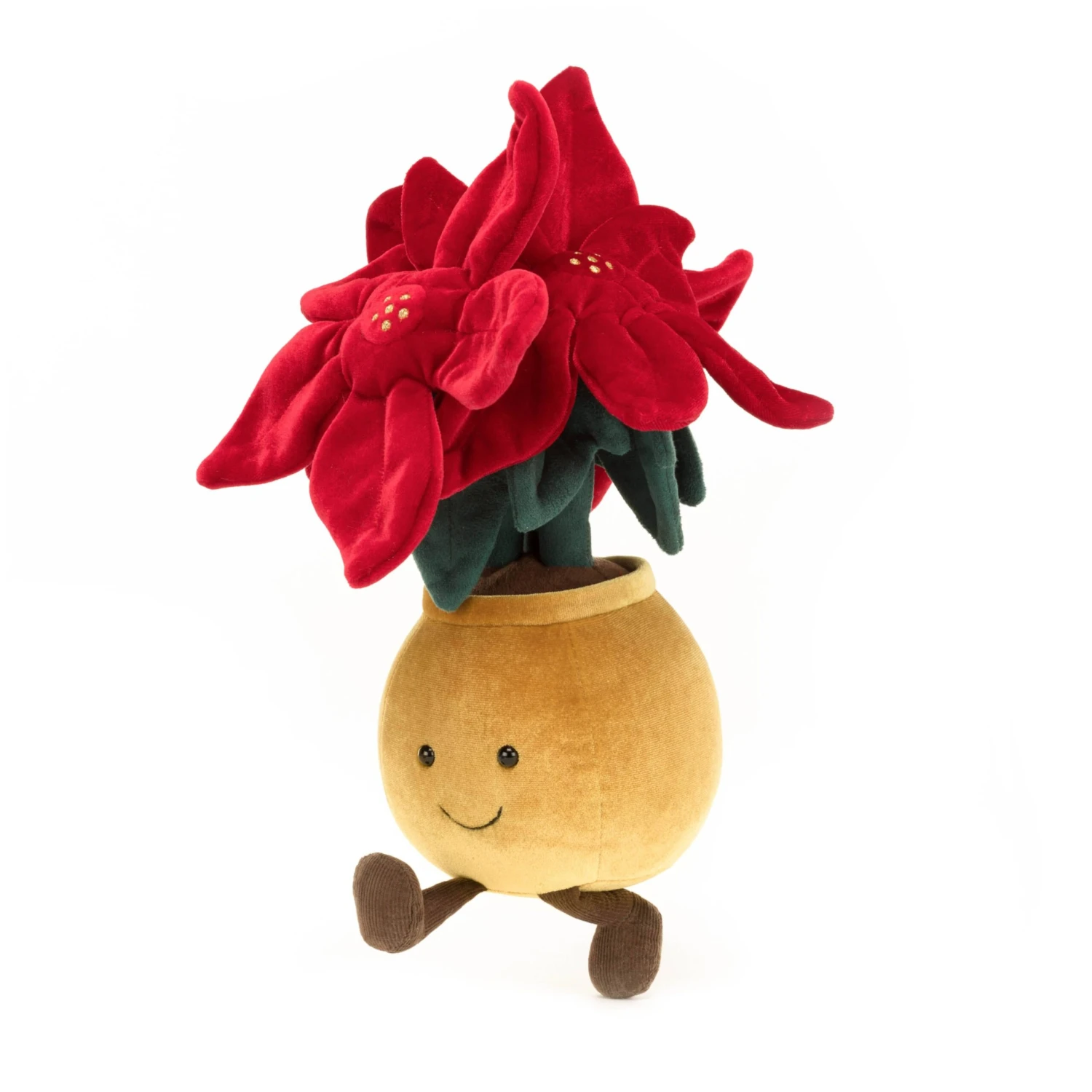 Amuseable Poinsettia is full of festive floral fun! This perky plant has ruby-red petals and stitchy golden pockets of pollen! In a soft woolly pot with cordy legs and leaves, and fluffy cocoa soil, this blossom brings joy to any dull desk!