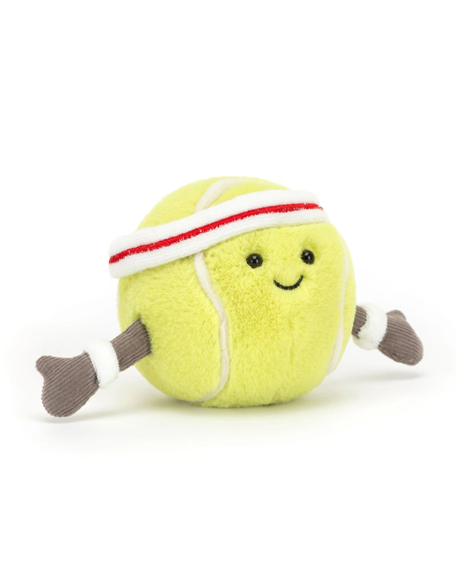 Serve up a cuddle with Amuseable Sports Tennis Ball. In bold zingy fur with cream piping and sweatbands, this smiley slicer is all aces in the game for best cuddler!