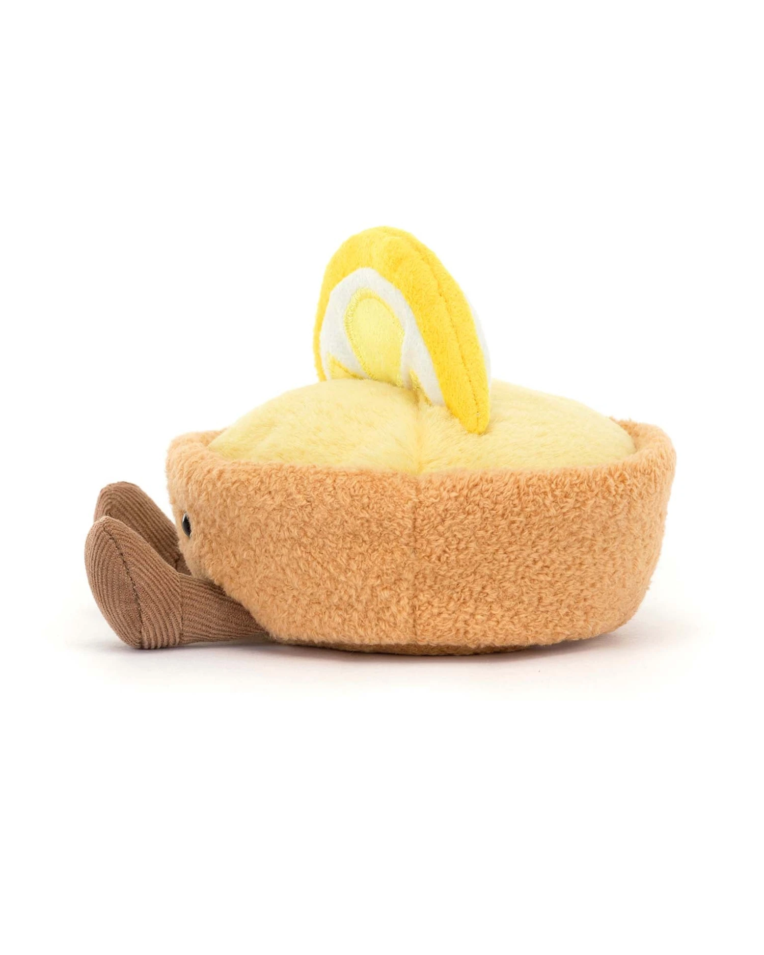 Amuseables Collette Tarte Au Citron is sweet, zingy, and perfectly baked. A textured, golden pâte sucrée base is filled with a soft lemon custard. Decorated with a suedette and stitched lemon slice, Collette has a sweet stitched smile, and fine cord legs. The perfect gift to bring a little joy and sweetness to every day.