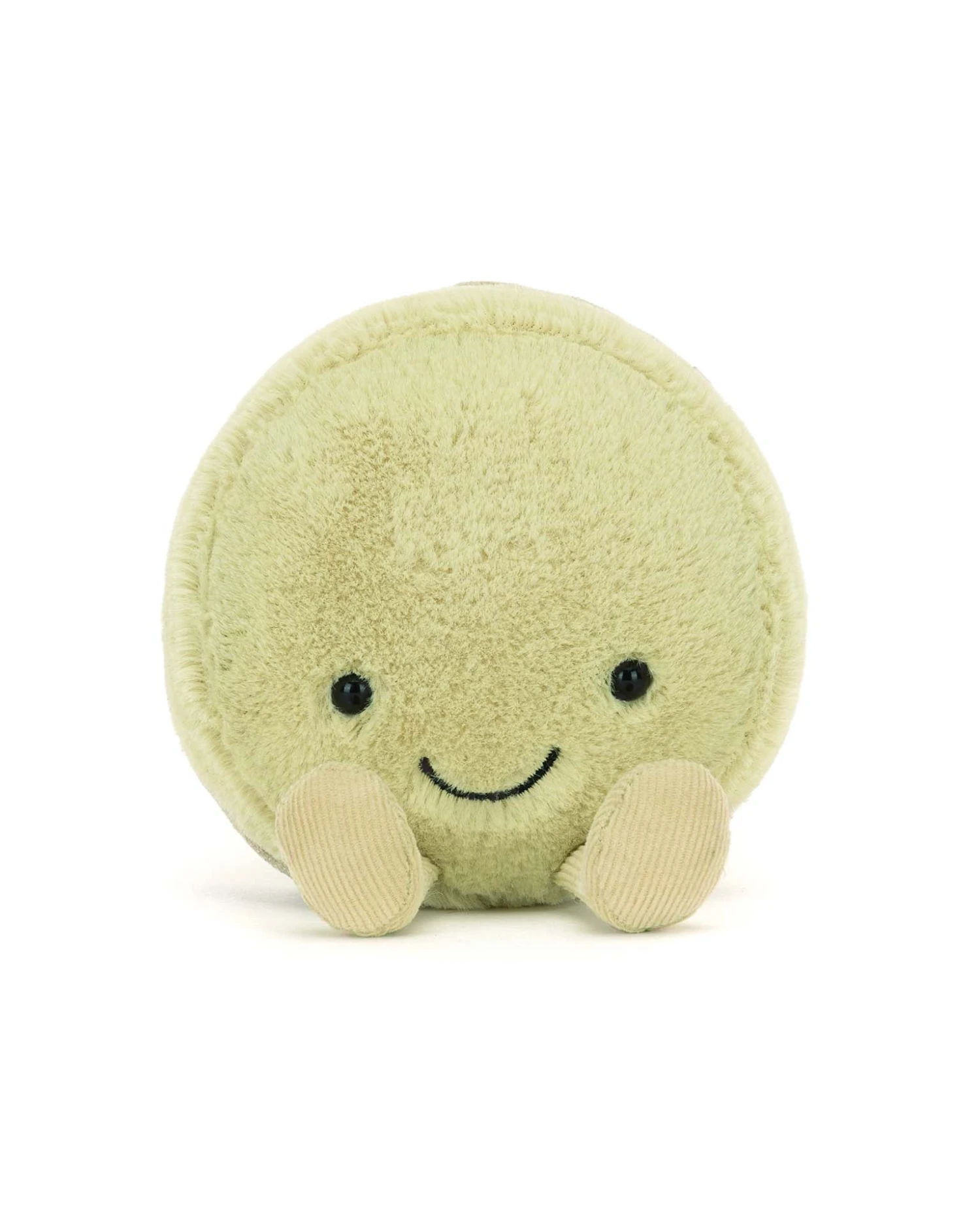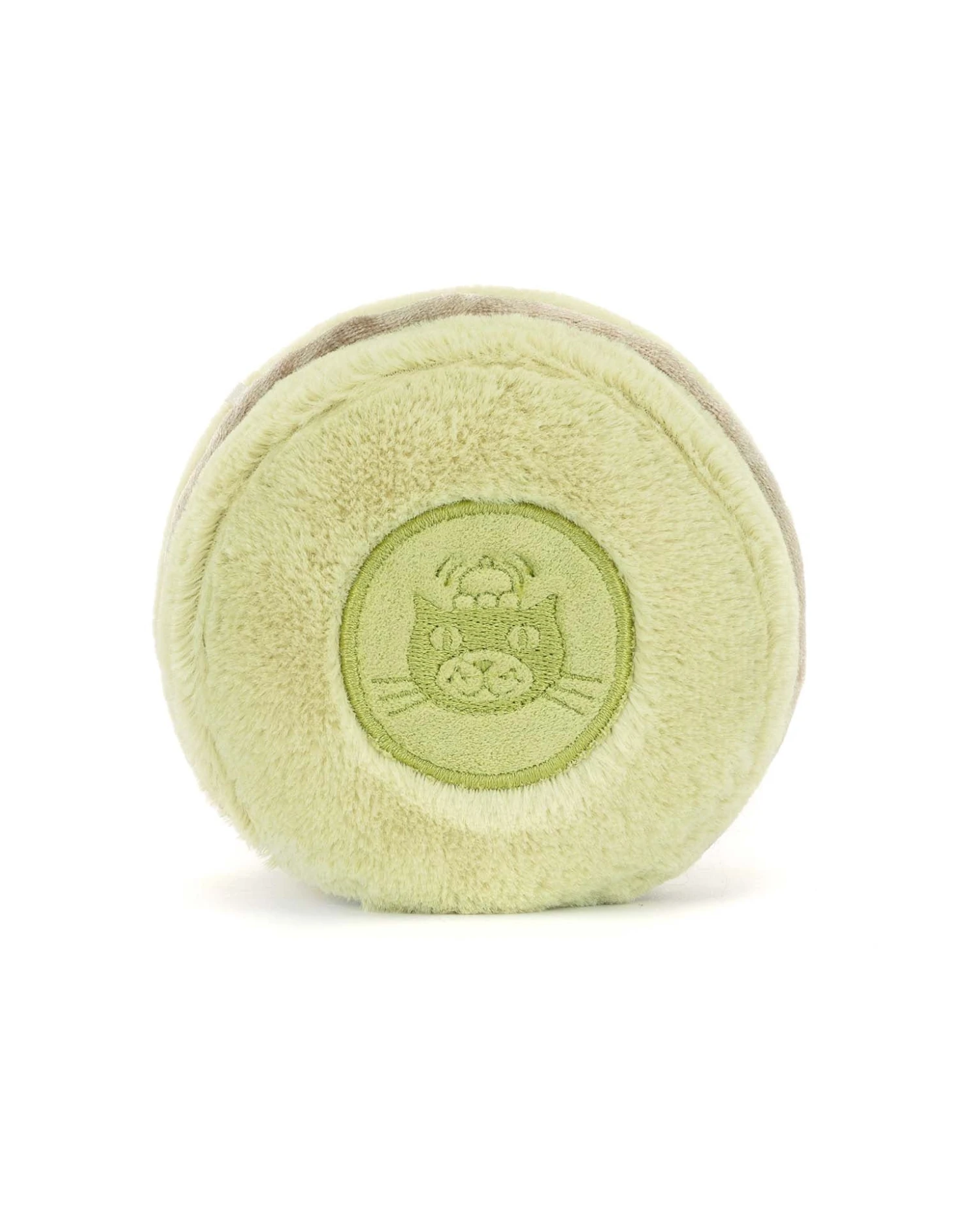 Amuseables Max Macaron is soft and sweet in green fur. With matching cordy feet, a big, stitched smile, and a velvety middle, Max has an embroidered Jellycat logo on the back for a truly luxurious treat!