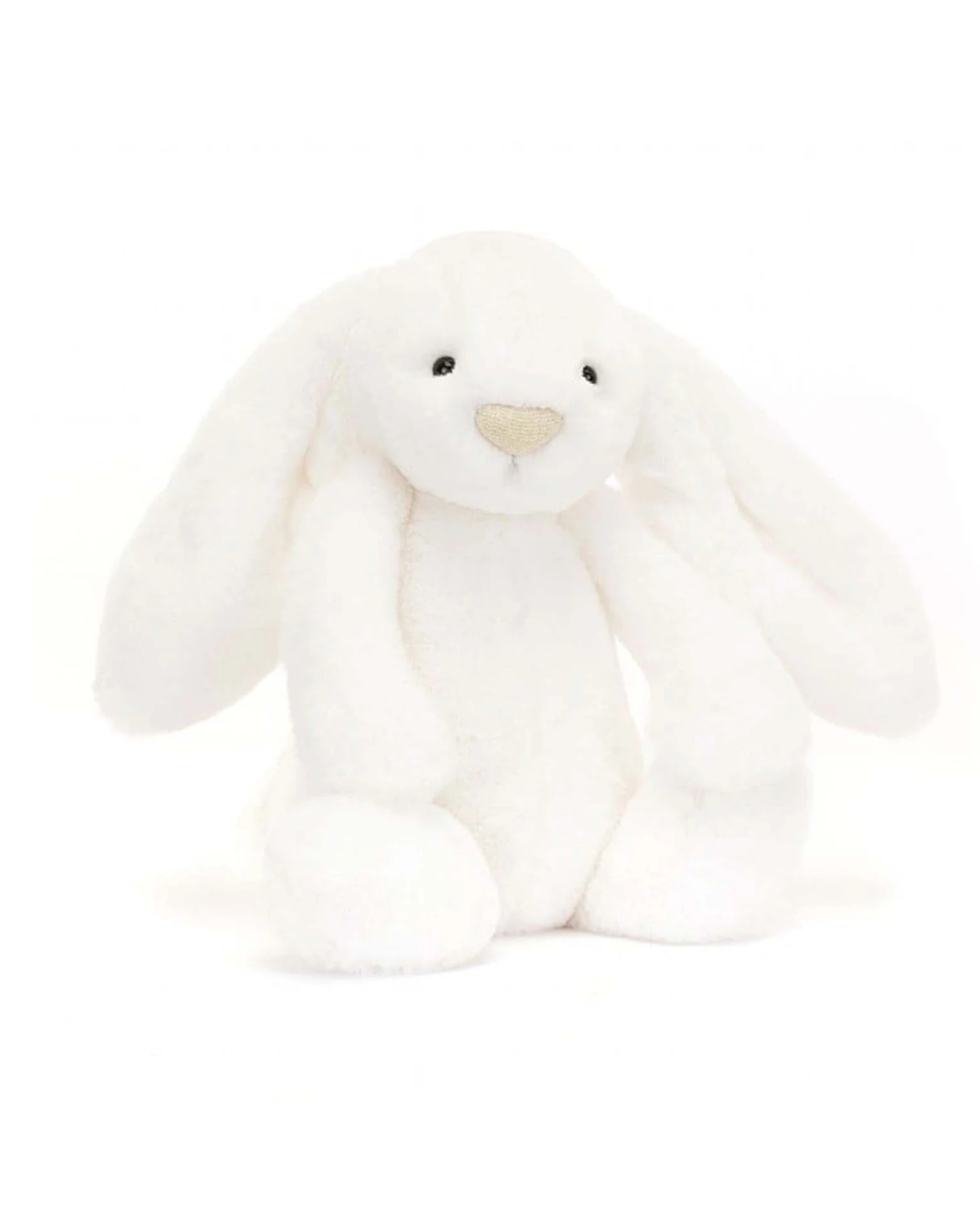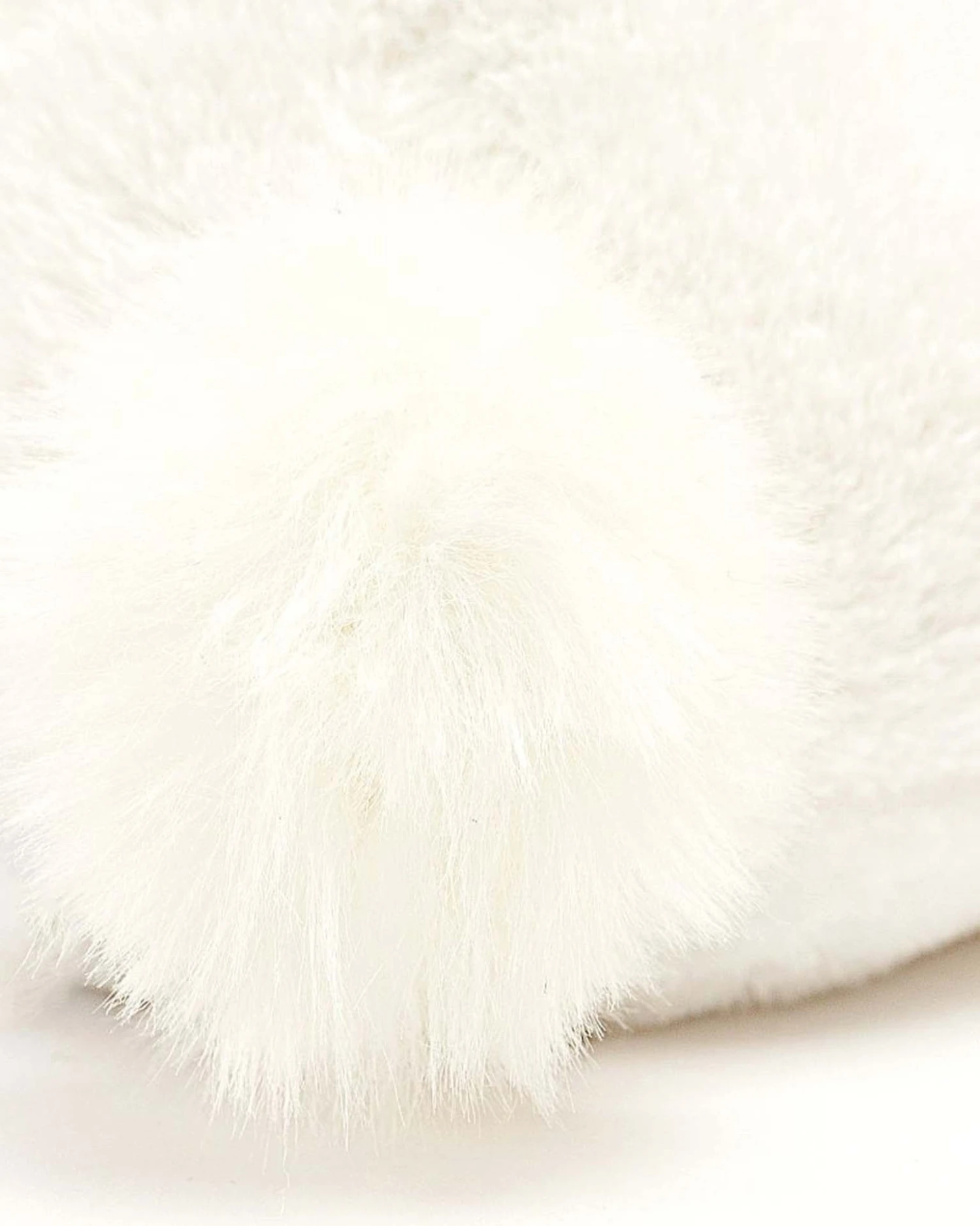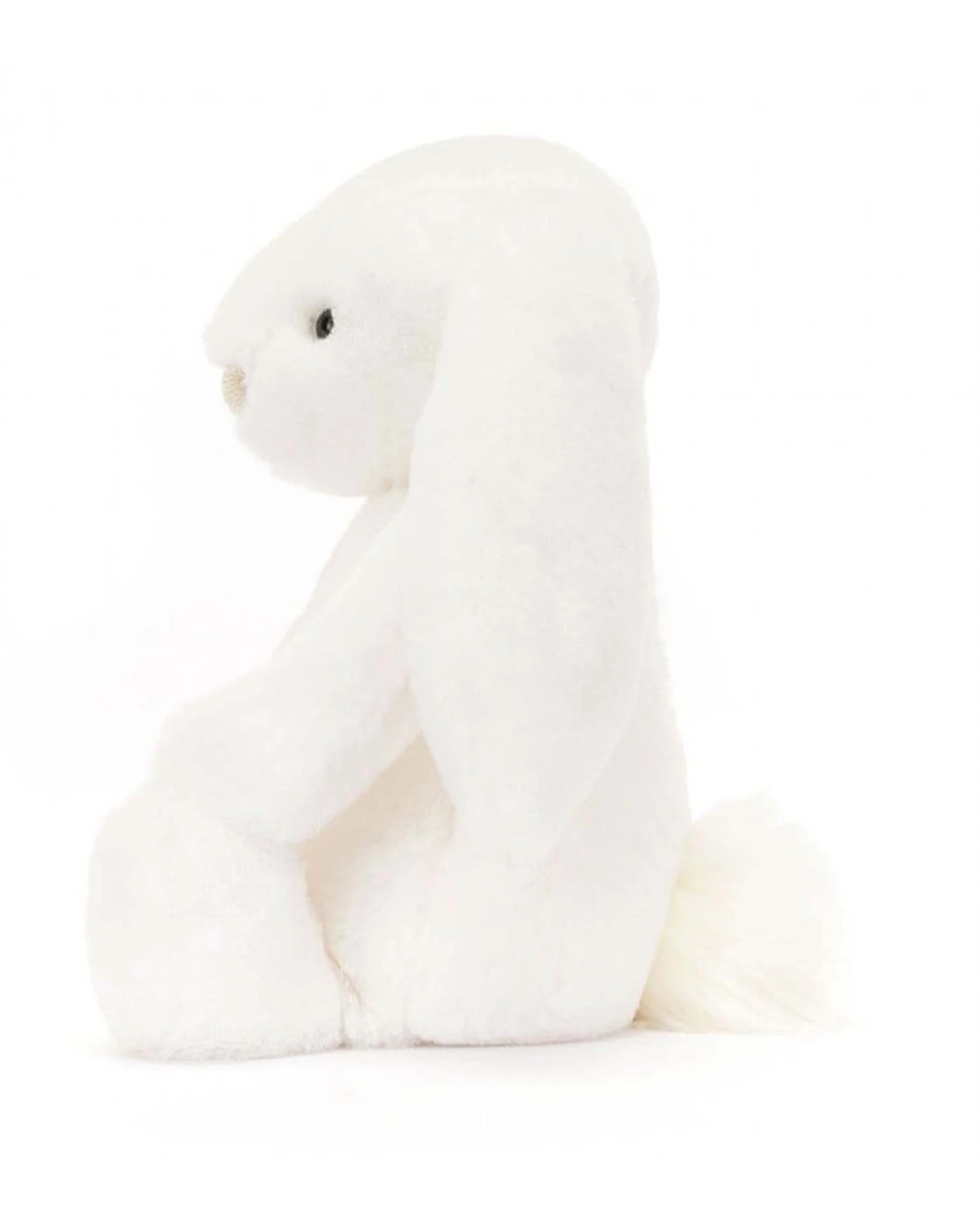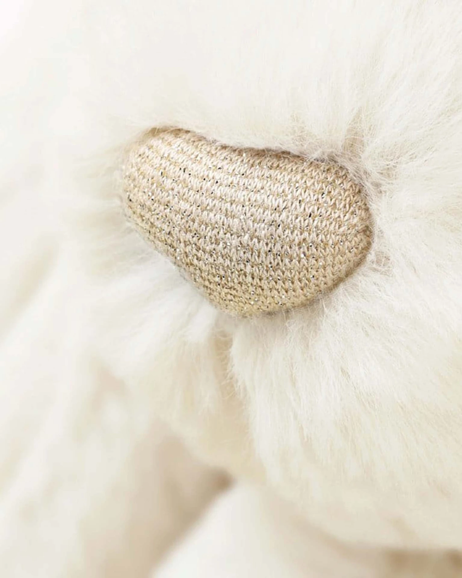 Bashful Luxe Bunny Luna is the dreamiest snow angel. This cloud-soft bunny has snow white fur, marshmallow paws and a glittery gold nose. A peaceful friend with long fold ears, Luna brings soothing Christmas cuddles.