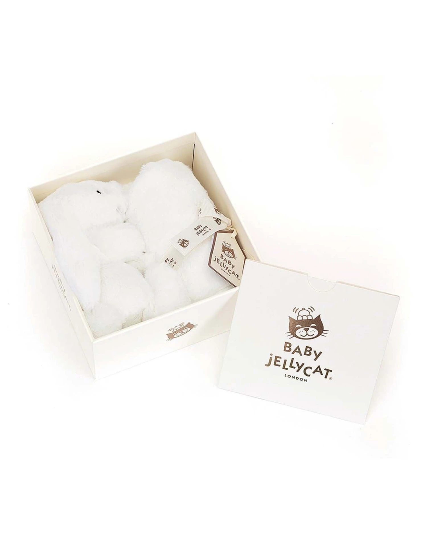 Bashful Luxe Luna Bunny Soother is irresistible to touch in our softest pure white fur. A timeless newborn gift, this lop-eared bunny holds our finest soother: a sumptuous cloud for newborns to doze with. Crafted with stitched eyes and gold thread nose, this soothing bunny is ready to gift in a satin sheen gift box with gold foil detail and matching gift card.