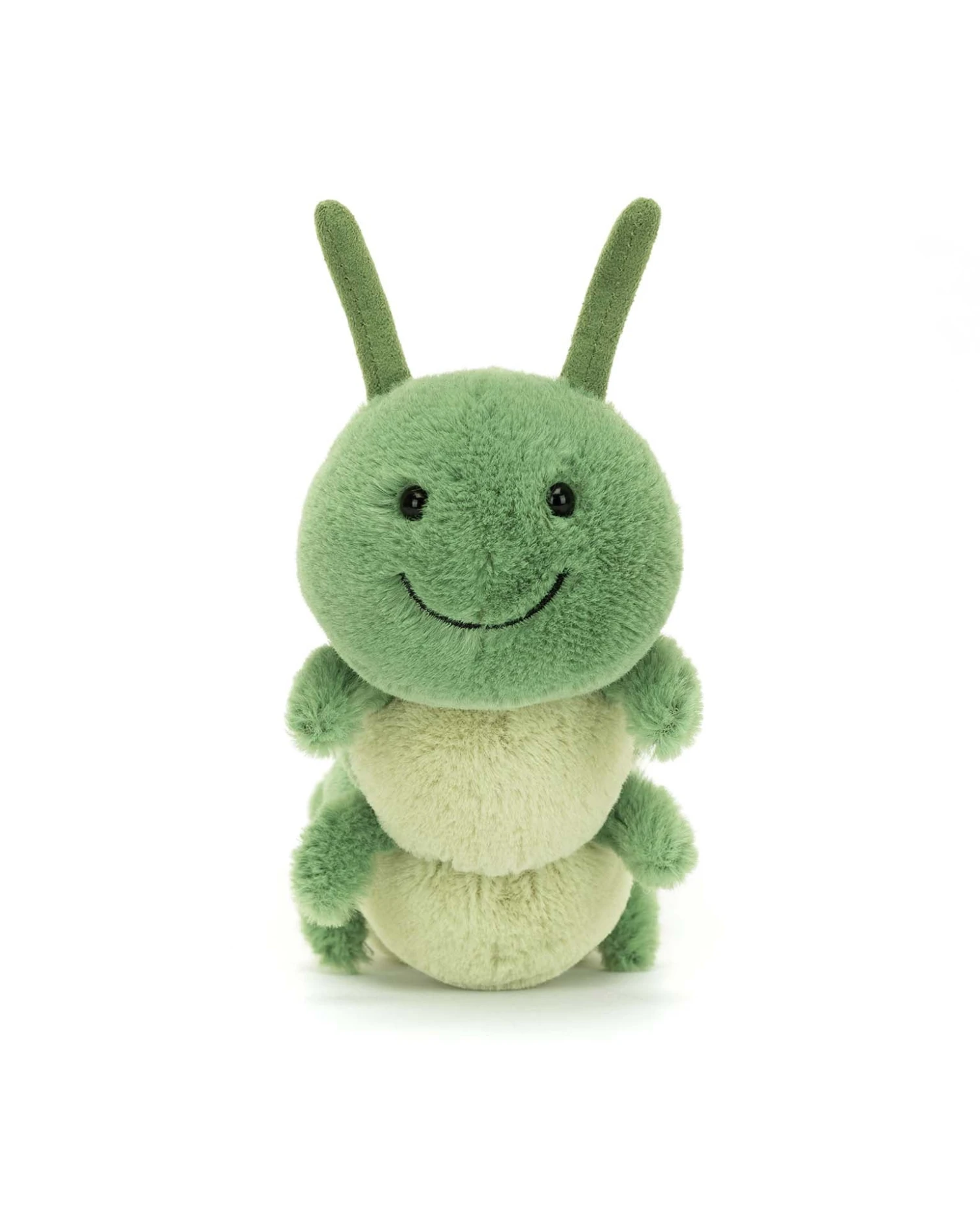 Standing tall in moss green fur, it’s Carys Caterpillar. With a pale green tummy and stitched segment detail, Carys has little legs, and suedette antennae. A big, stitched smile means Carys can brighten any day, and give hugs and hugs and hugs!