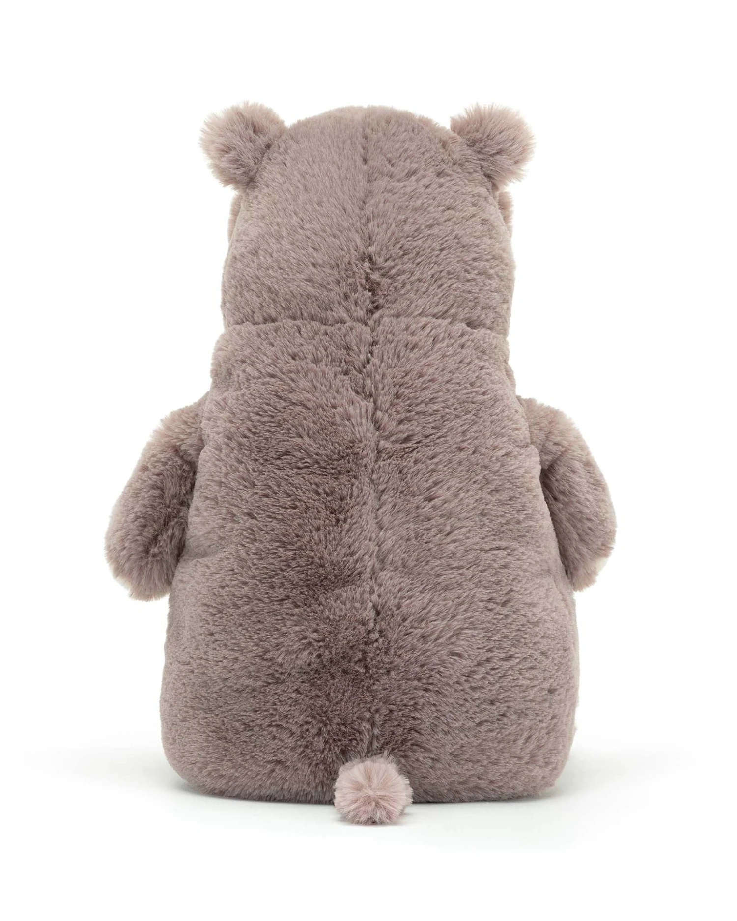 Myrtle Hippopotamus is as round as a barrel and soft as velvet in dusky mauve fur. This gentle hippo has rumpled brows, ruched nostrils and rose paw-patches. With a sweet little tail and snuggly muzzle, Myrtle stands out in the herd.