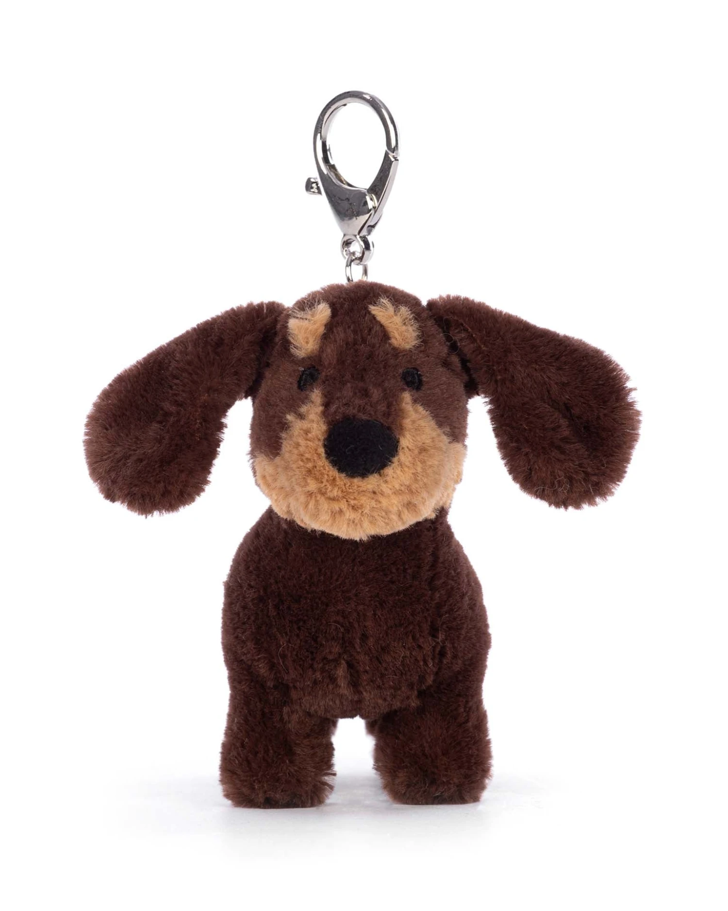 Bring your backpack to life with the Otto Sausage Dog Bag Charm. This quirky accomplice has hazelnut-chocolate fur with a curious tail and flying ears! With a crabclaw clasp, silver chain and gleaming Jellycat tag, Otto can hold on tight.