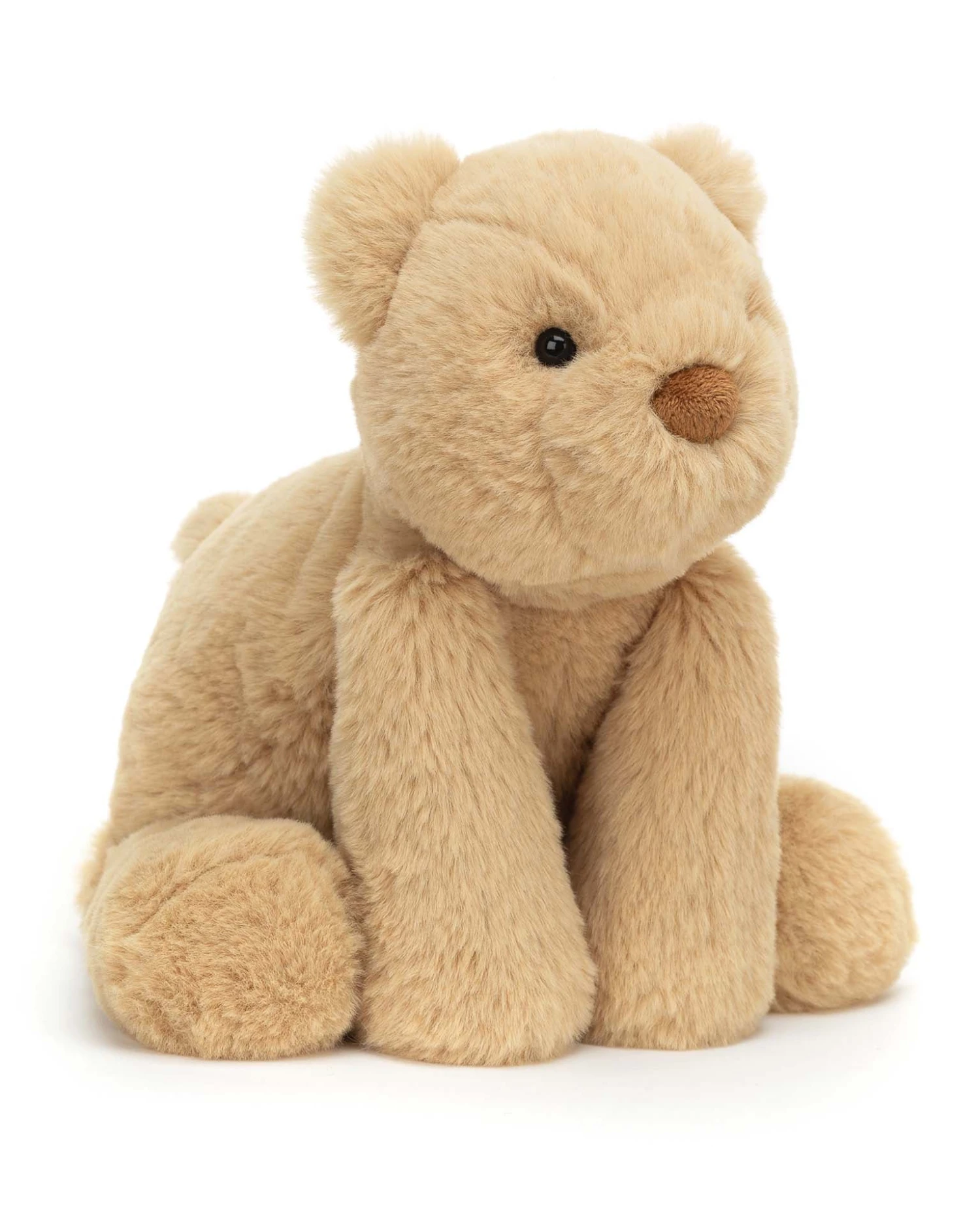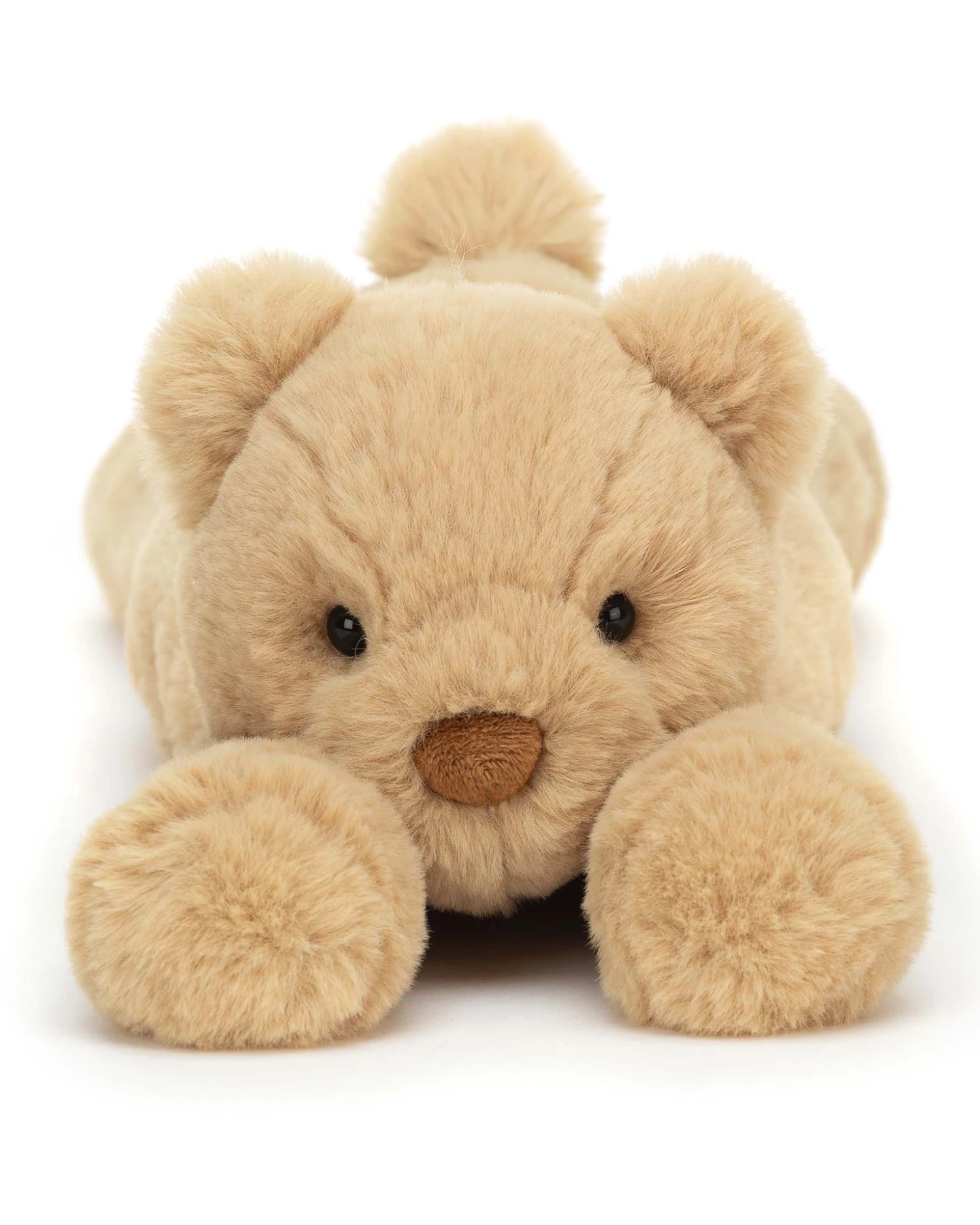 Smudge Bear is ready to snooze. It’s no surprise that this teddy bear gives a great hug, with silky soft fluff in shades of honey, and podgy trumpet paws. This peaceful cub is ready to snuggle up.