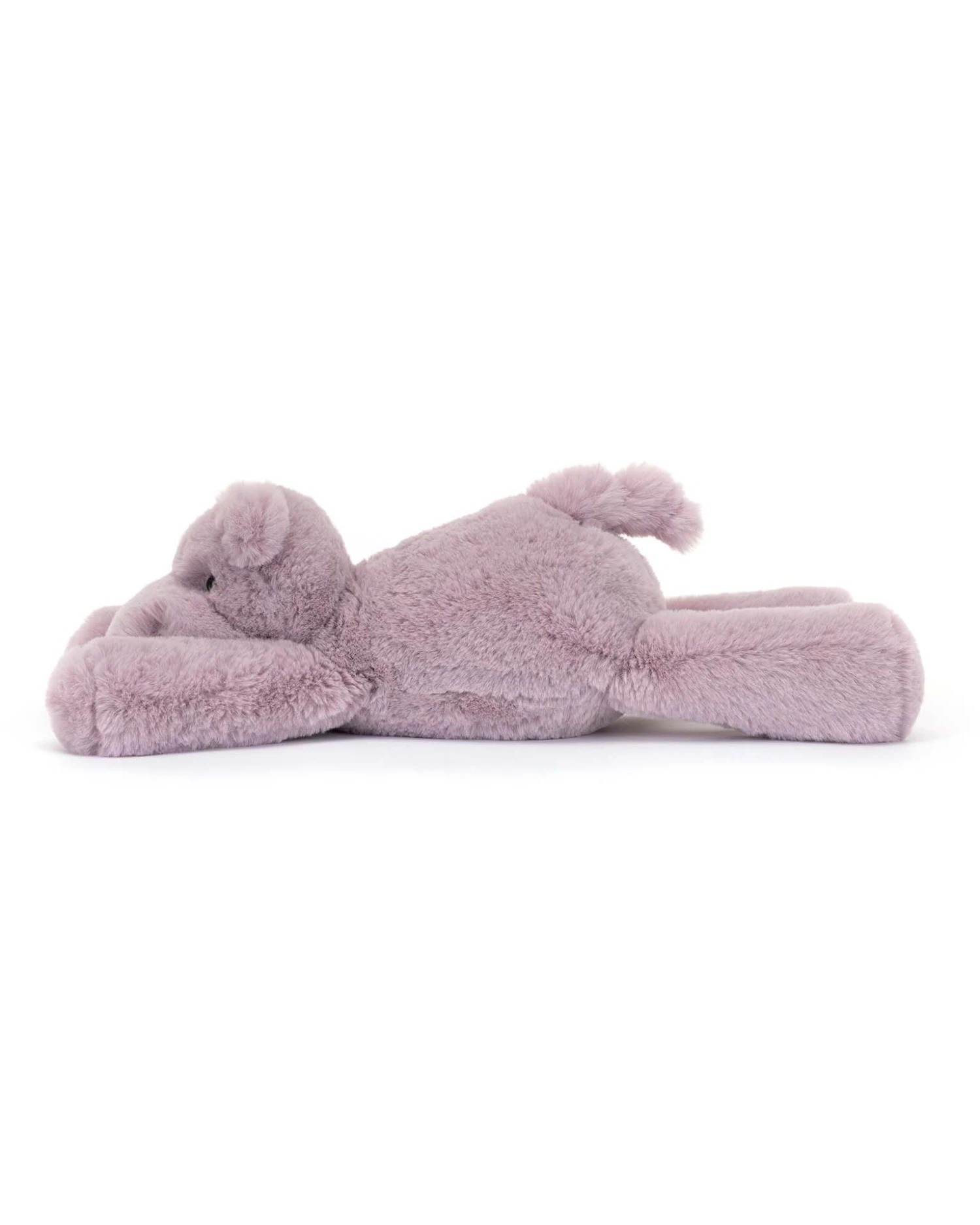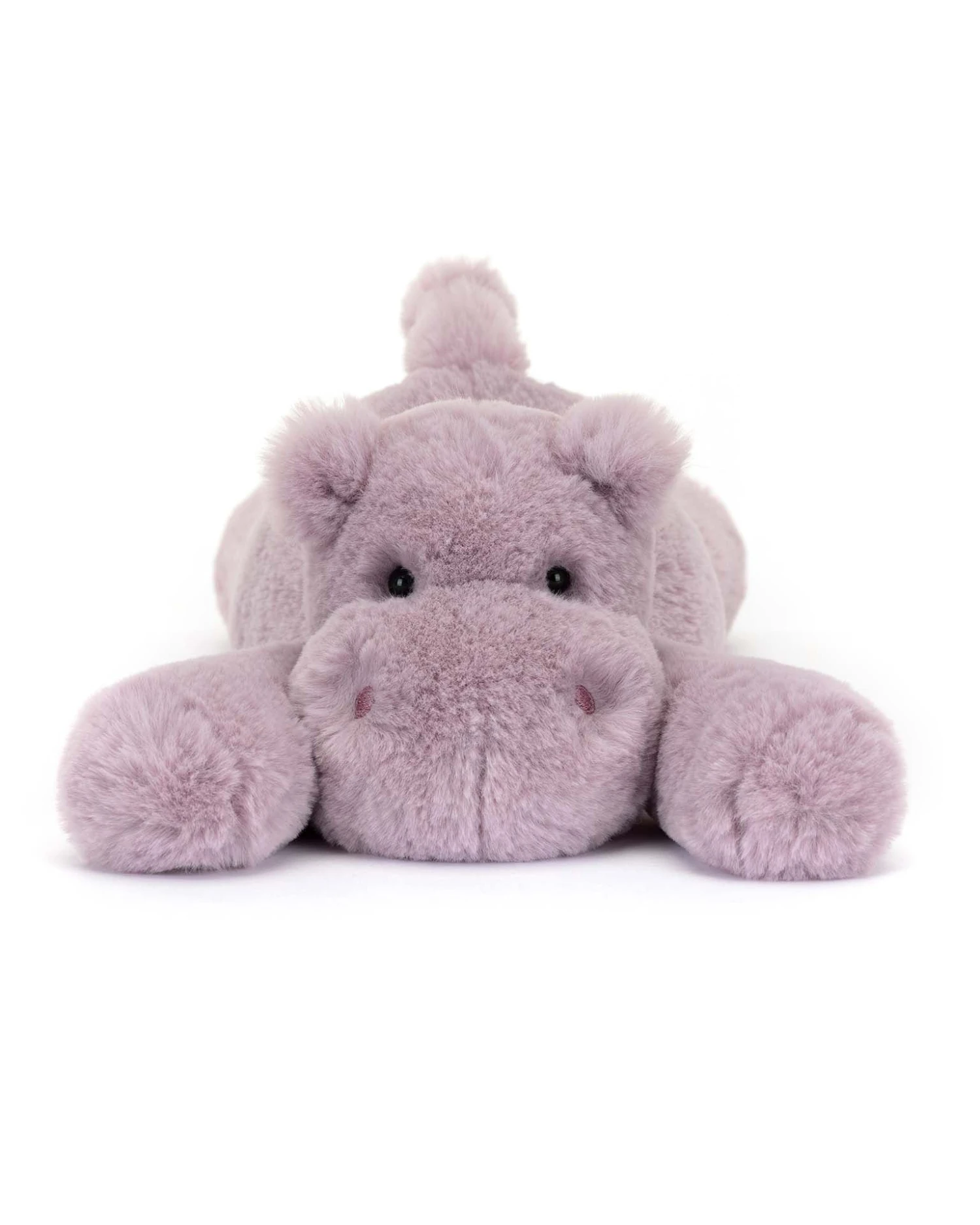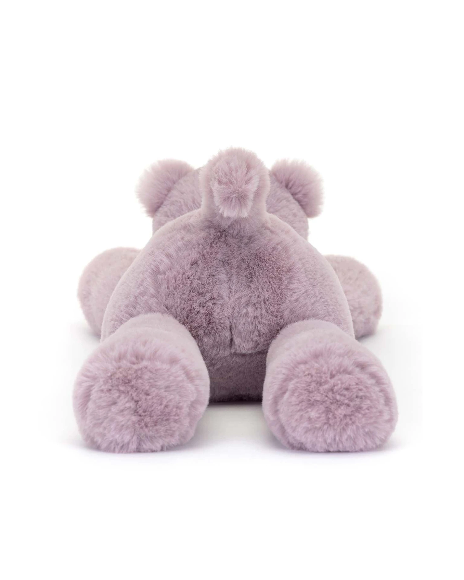 Smudge Hippo is a smiling sweetie in super soft lilac fur. With dainty ears, stitched nostrils and a curved tail, this lilac lovely has long legs and a squishy tummy. A loving companion, Smudge Hippo is a great gift for any bouncing baby.