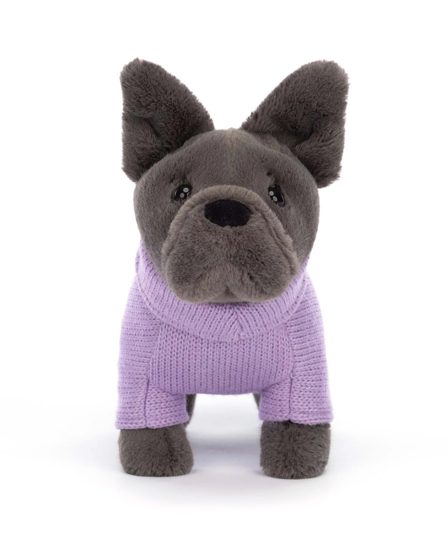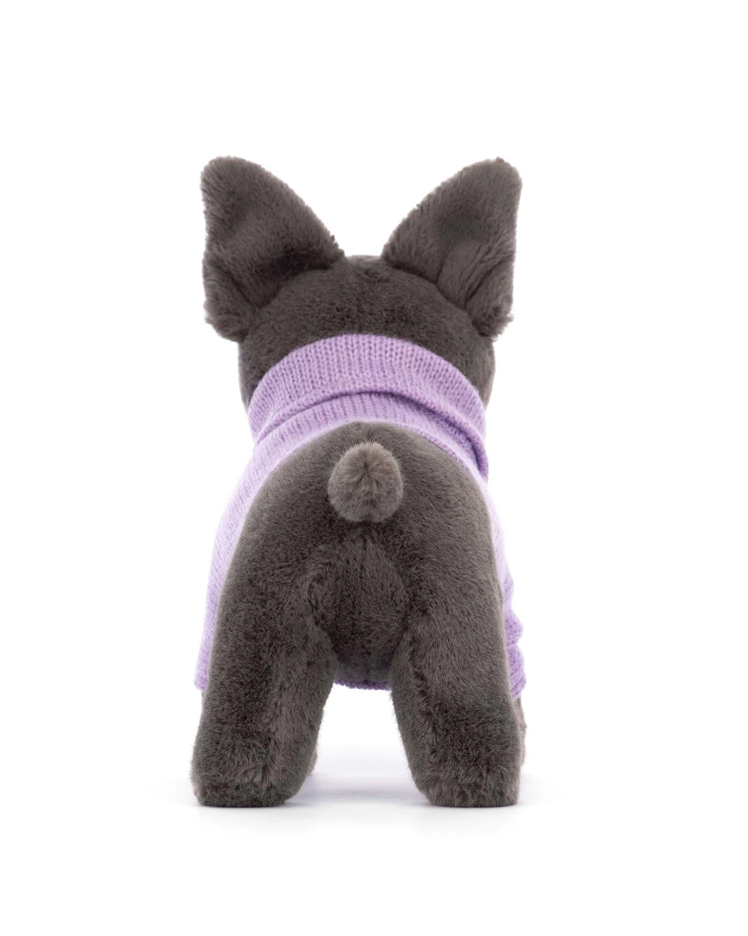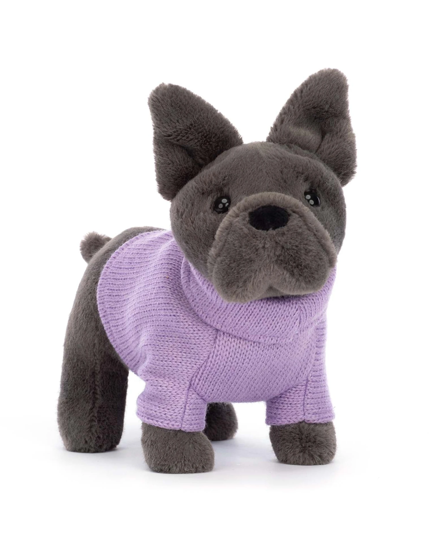 Bonjour! Sweater French Bulldog Purple is rocking the dog park in their lavender rollneck. This blue-grey pup has sweet stocky legs, a rumpled muzzle and a perky short tail, and if they want to run amok, the sweater comes off!